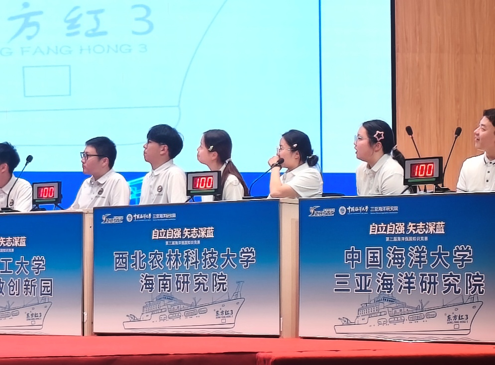 第三届海洋强国知识竞赛由三亚崖州湾科技城管理局指导,中国海洋大学三亚海洋研究院主办,分为初赛、复赛与决赛环3个阶段。经过层层选拔淘汰,我院代表队成为唯一一支闯入决赛的非海洋领域专业的代表队,与中国海洋大学、上海交通大学、哈尔滨工程大学、武汉理工大学及海南热带海洋学院等在琼单位代表队竞逐决赛。